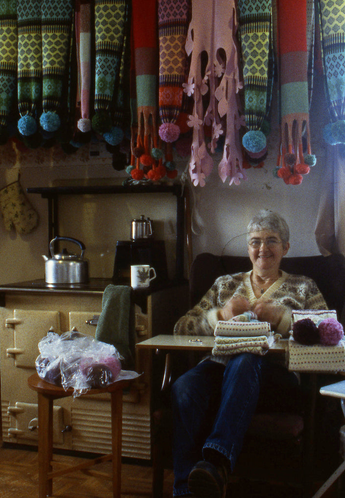 Dundee was once a thriving textile centre, famous for linen, sailcloth, and jute. Today, that tradition is finding fresh expression. At the Knit Shop, Donna has brought together a team of enthusiastic, highly skilled local makers to knit, sew, and link her products. The Knit Shop has become more than just a production space: it’s a micro-factory that combines design, craft, and education. It supports the next generation of makers and designers by offering services to other creatives, employing local talent, and fostering strong partnerships with Dundee’s art schools. Donna and her team also provide awards and support for graduates who are looking to establish themselves within the textile industry. As well as the Knit Shop, Donna partners with skilled craftspeople from across the UK, from Bethnal Green in London to our own island in Stromness. In fact, in the early 2000s, Donna even designed in Orkney alongside Ingrid at Tait & Style.