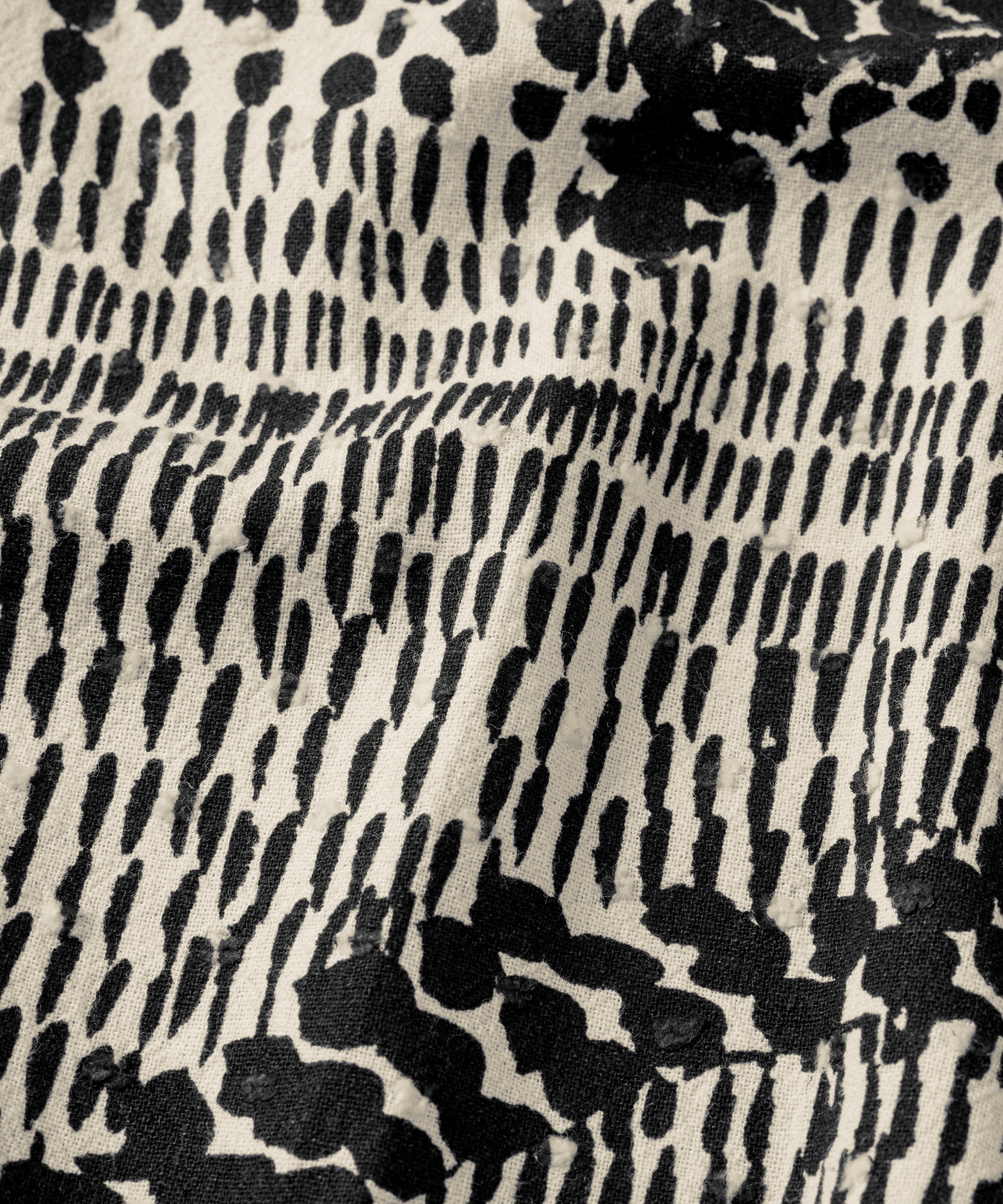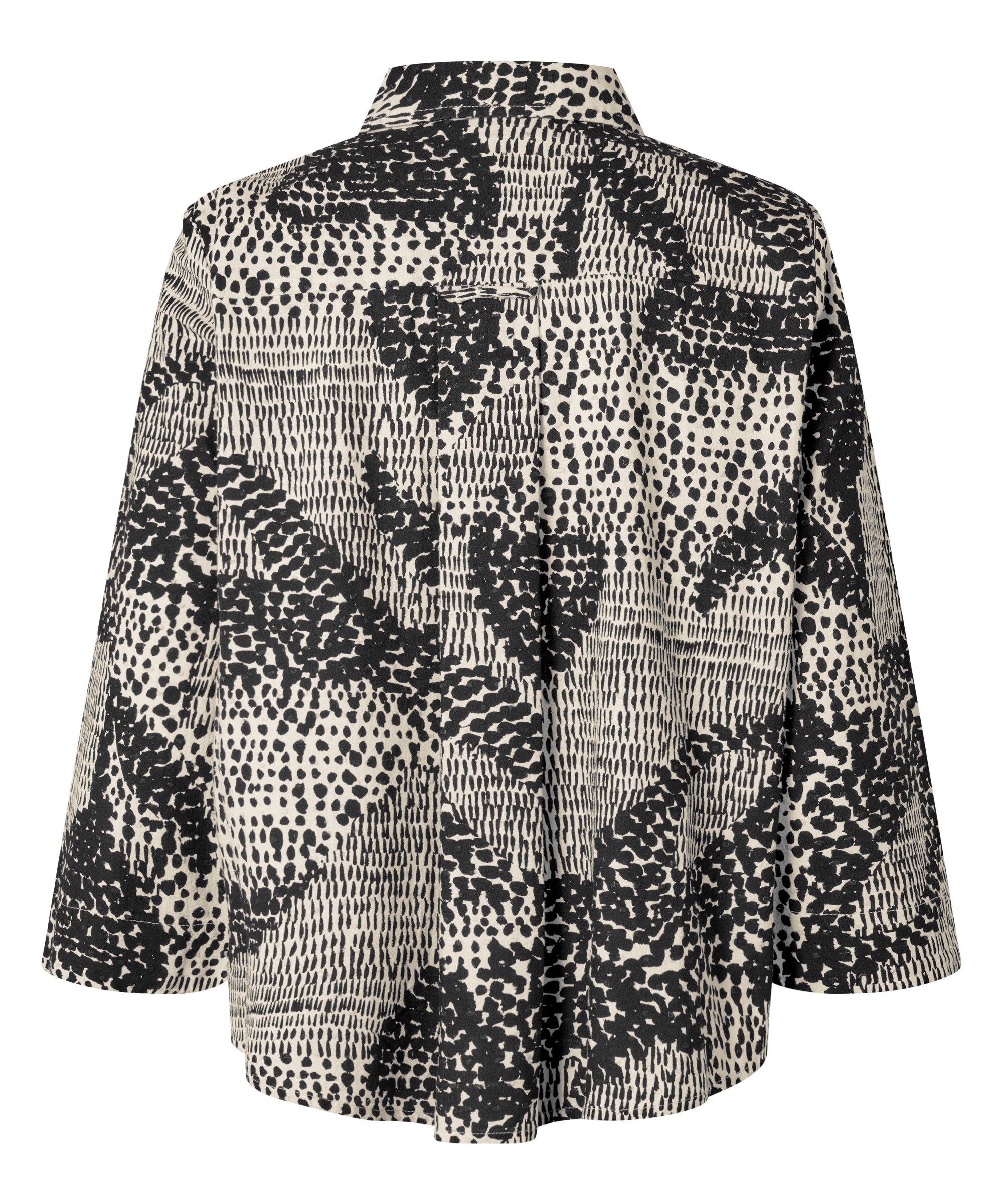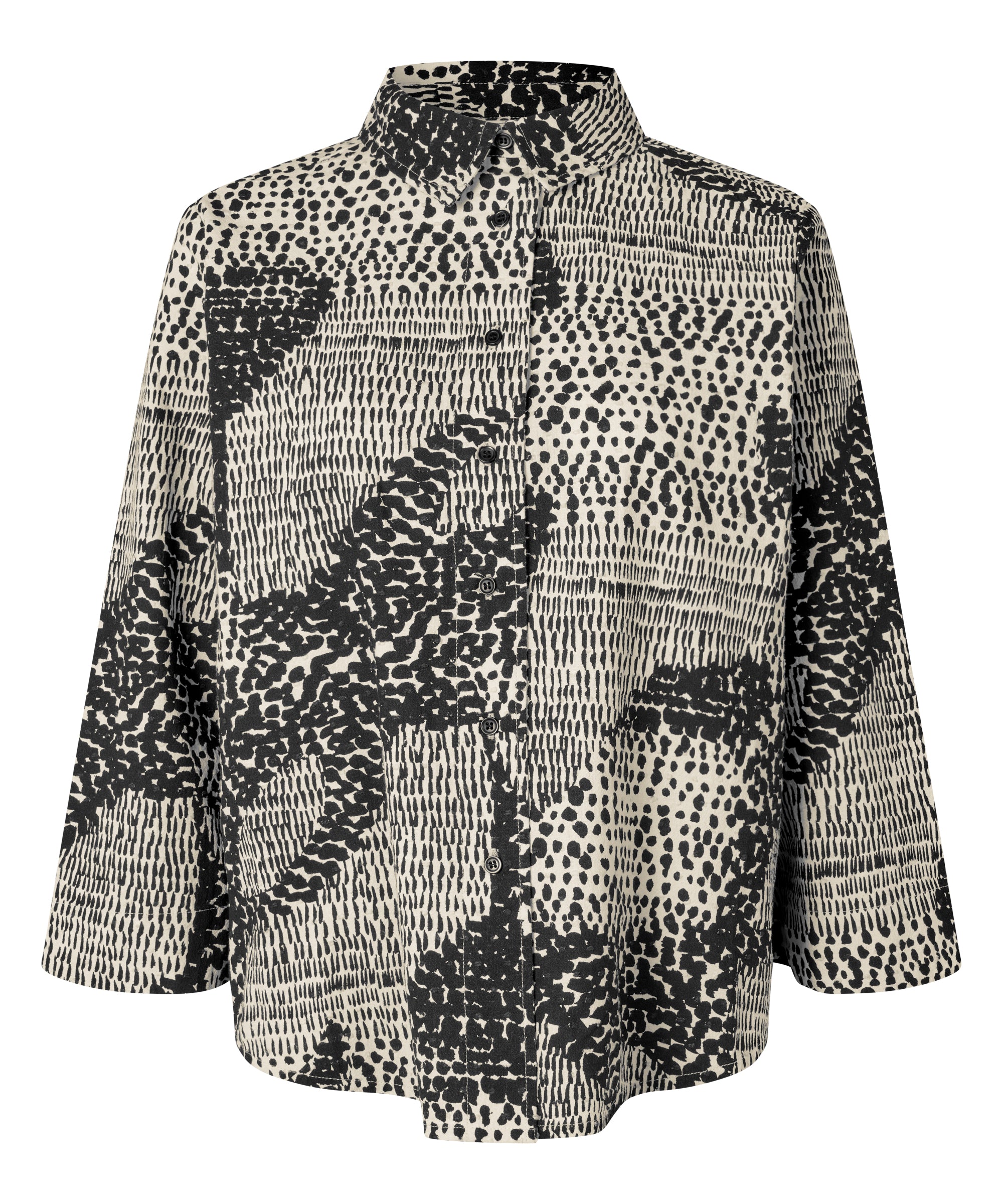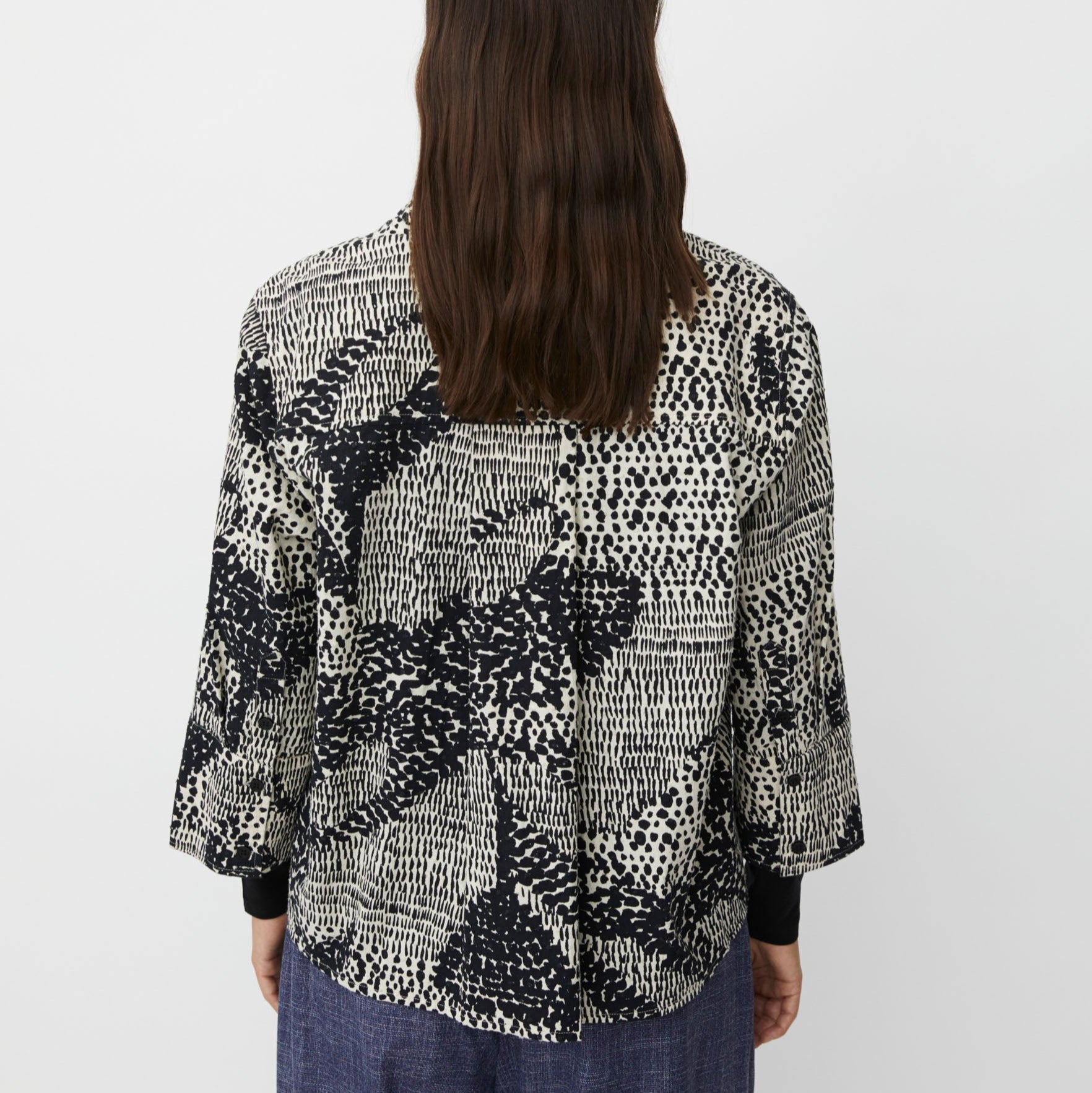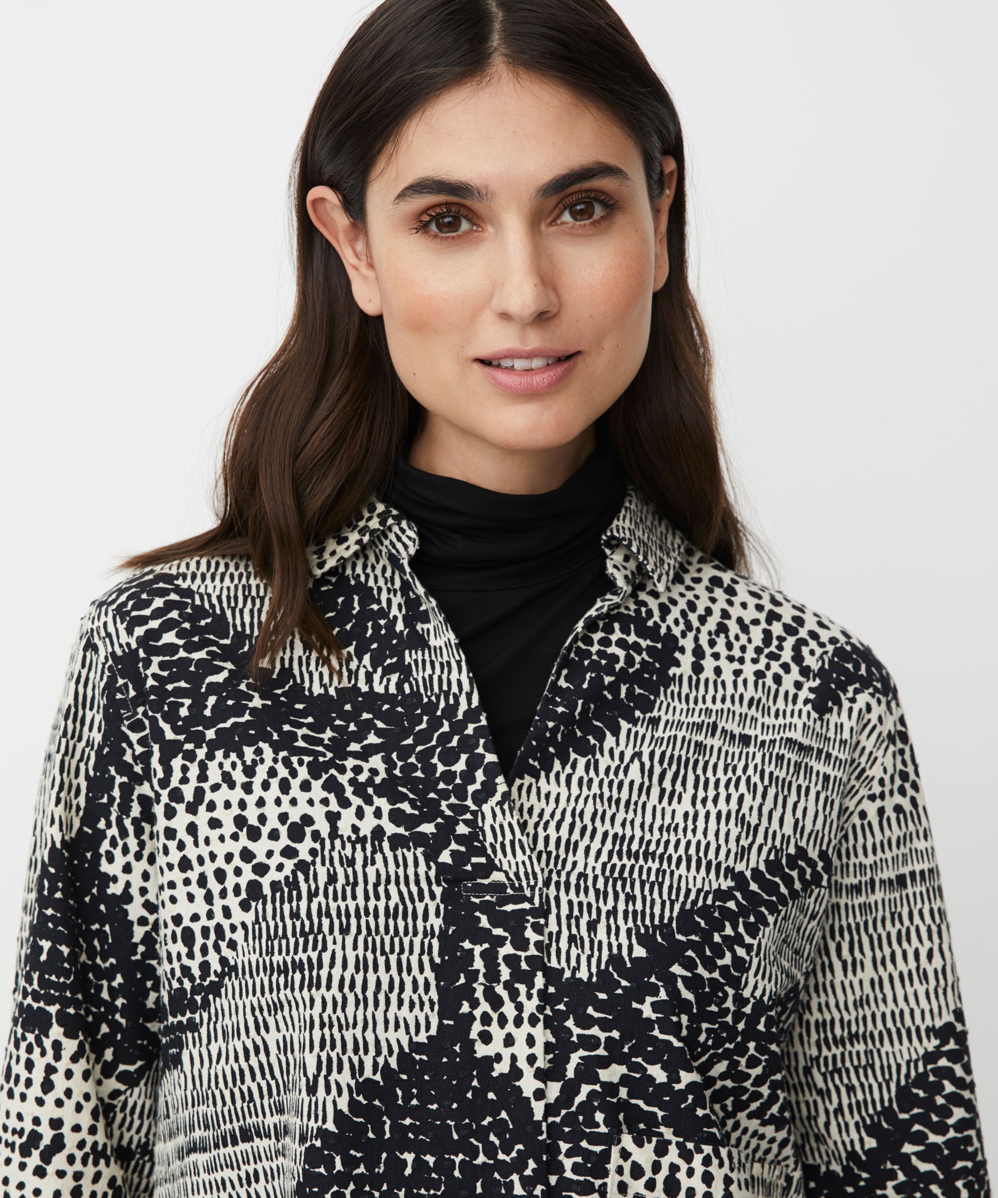 The graphic print gives this top a lively and characterful look. It is cut from soft cotton with a light A-shape cut, feminine drapes at the back, and three-quarter length sleeves with cuffs. The large front pocket adds a discreet yet decorative twist. A modern classic, easy to style with the favourites already in your wardrobe.