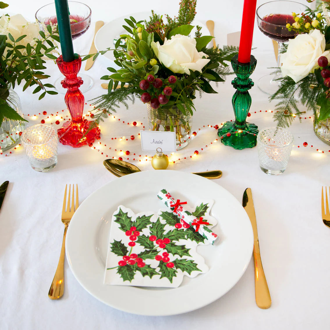 Christmas Holly Shaped Napkins by Talking Tables. The perfect accompaniment to your Christmas table! This pack of 20 bright napkins is ideal for celebrating with loved ones whether that's Christmas Day, Boxing Day or just a festive gathering with friends. Use to mark out place settings for each of your guests or to serve festive nibbles.