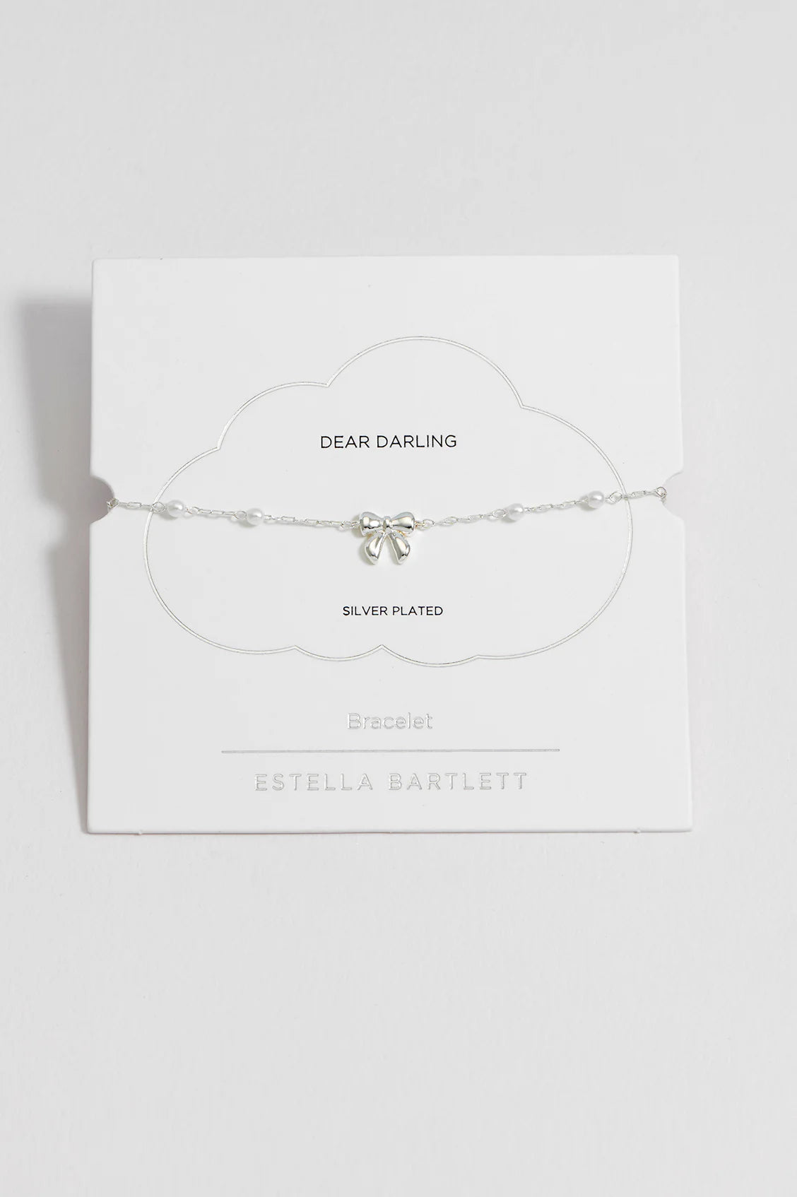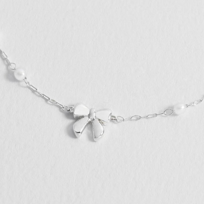 Bow With Pearl Beaded Chain Bracelet - Silver