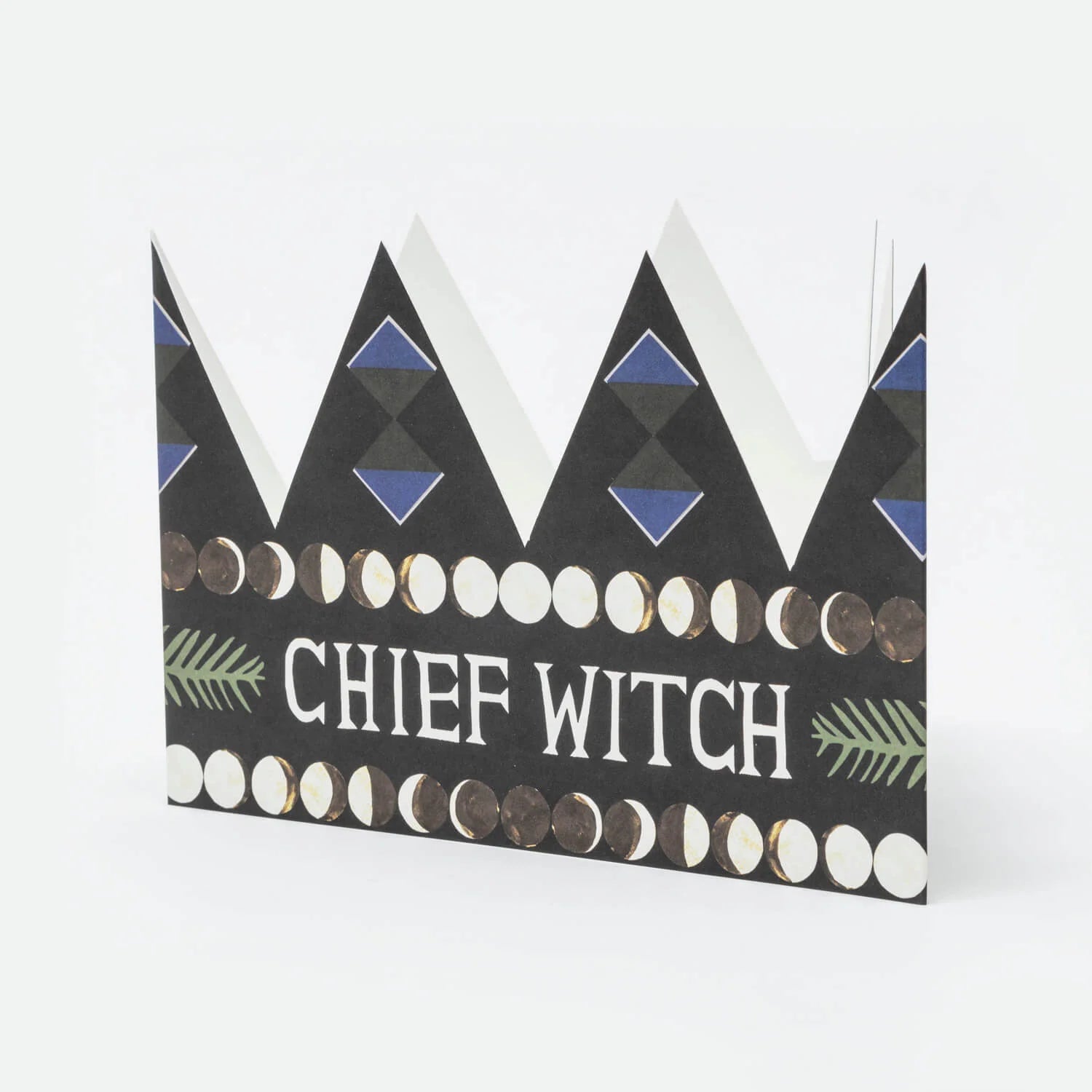 Our party hat greeting cards are super fun and adjustable for the perfect fit. Let the Chief Witch wear their crown with pride all day long and remind everyone who's boss!