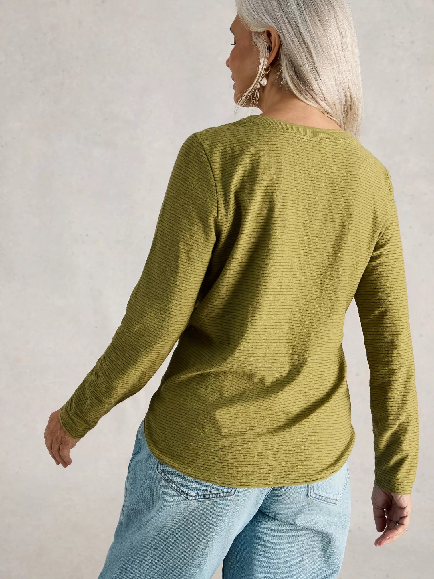 Clara Textured Long Sleeved Tee - Khaki Green