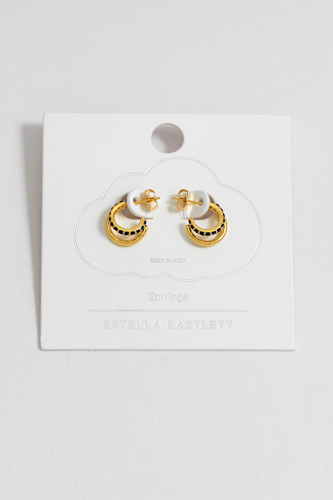 Double Hoop Plain & Cz Earrings - Gold Plated