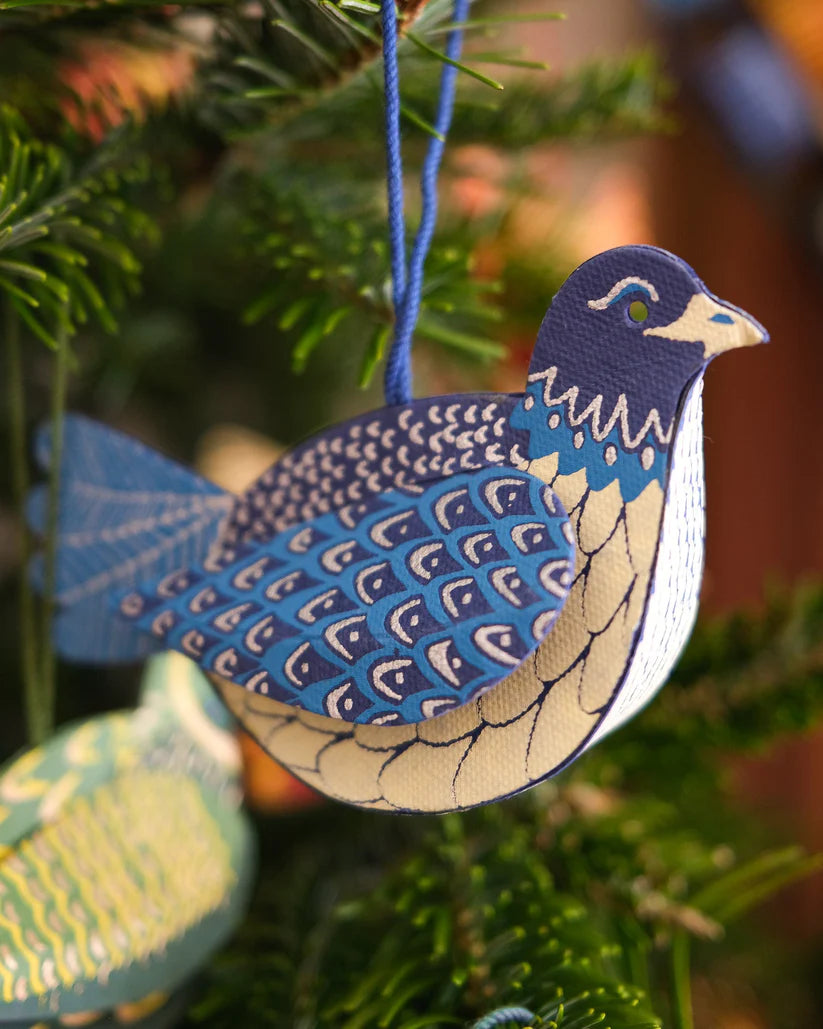 Screen printed board ornament, sustainably made from 100% recycled paper.