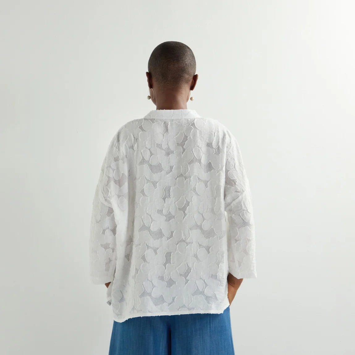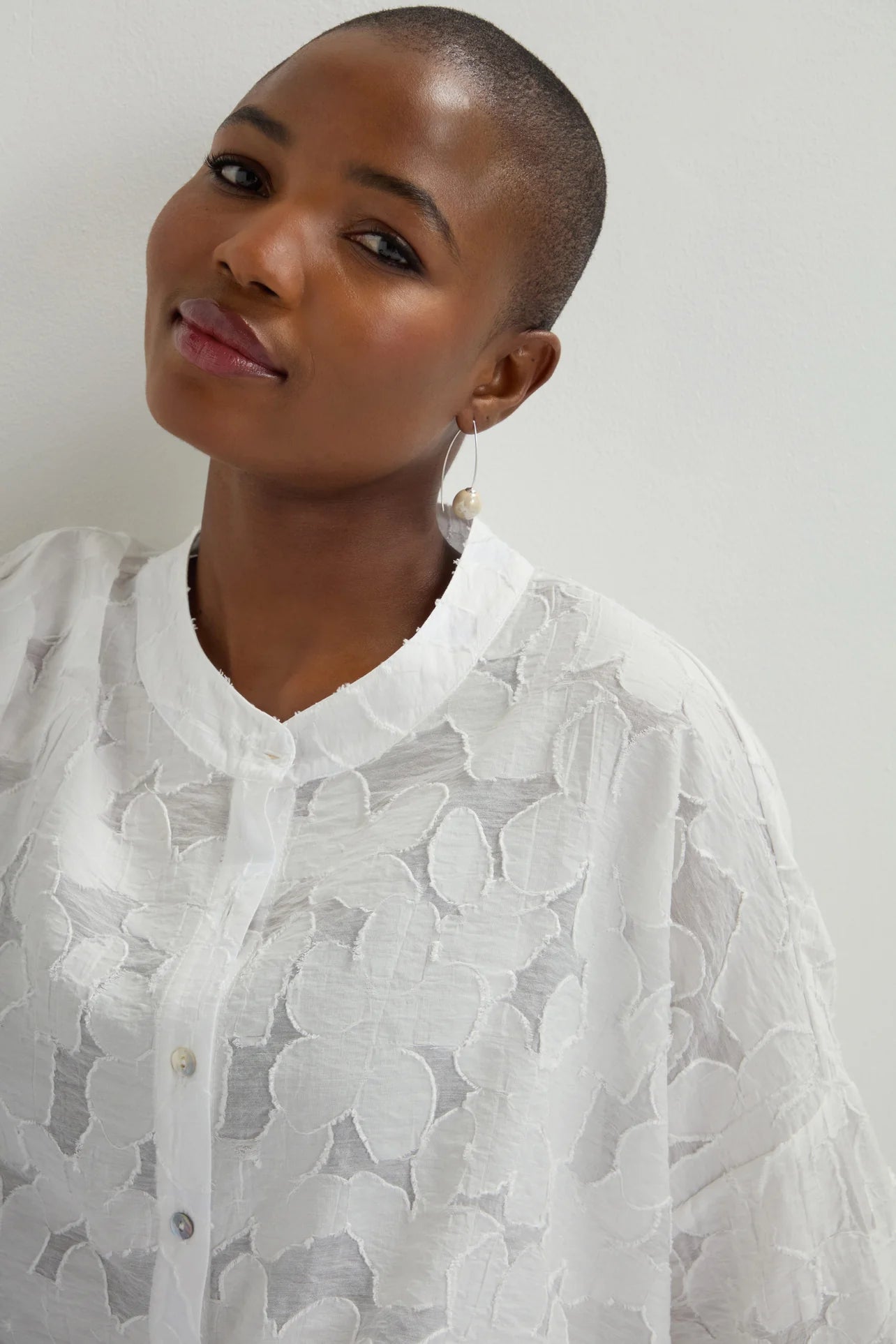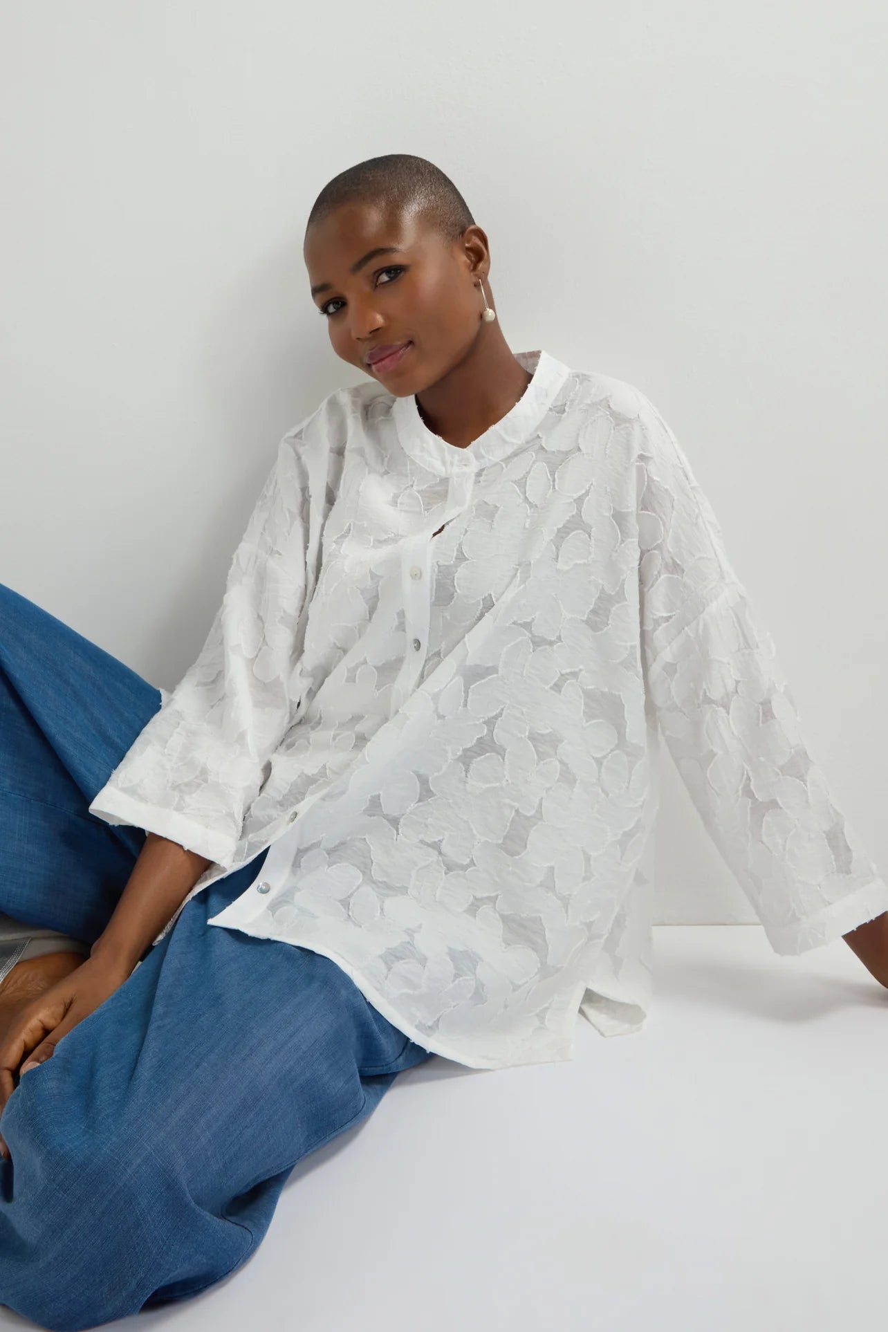 Effortlessly elegant, the Etched Floral Viscose Shirt is a timeless piece designed for versatile styling. Crafted from a specialist jacquard weave, this shirt showcases a delicate floral pattern with subtle texture and depth, featuring sheerer areas that highlight the intricate design. The soft shape enhances its boxy silhouette, making it a relaxed yet refined choice for any occasion.
