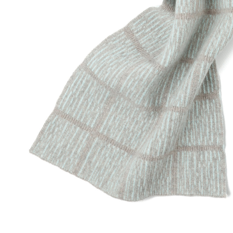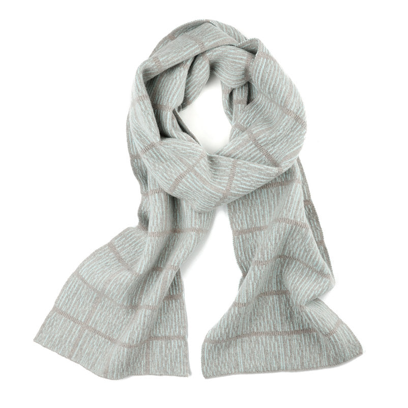 This design is a combination of a block check with an irregular stripe and has been knitted with 100% luxury soft lambswool. Each item is hand produced on an industrial knitting machine and hand finished to create fine details and excellent quality.
