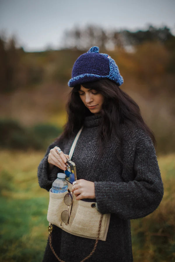 This holiday bag made by hand-weaving hemp in Nepal, is the perfect travel or everyday essentials bag.