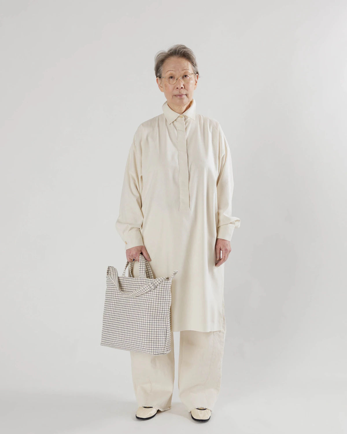 An updated version of our Horizontal Duck Bag, now with a zip top closure to keep your belongings nice and secure.