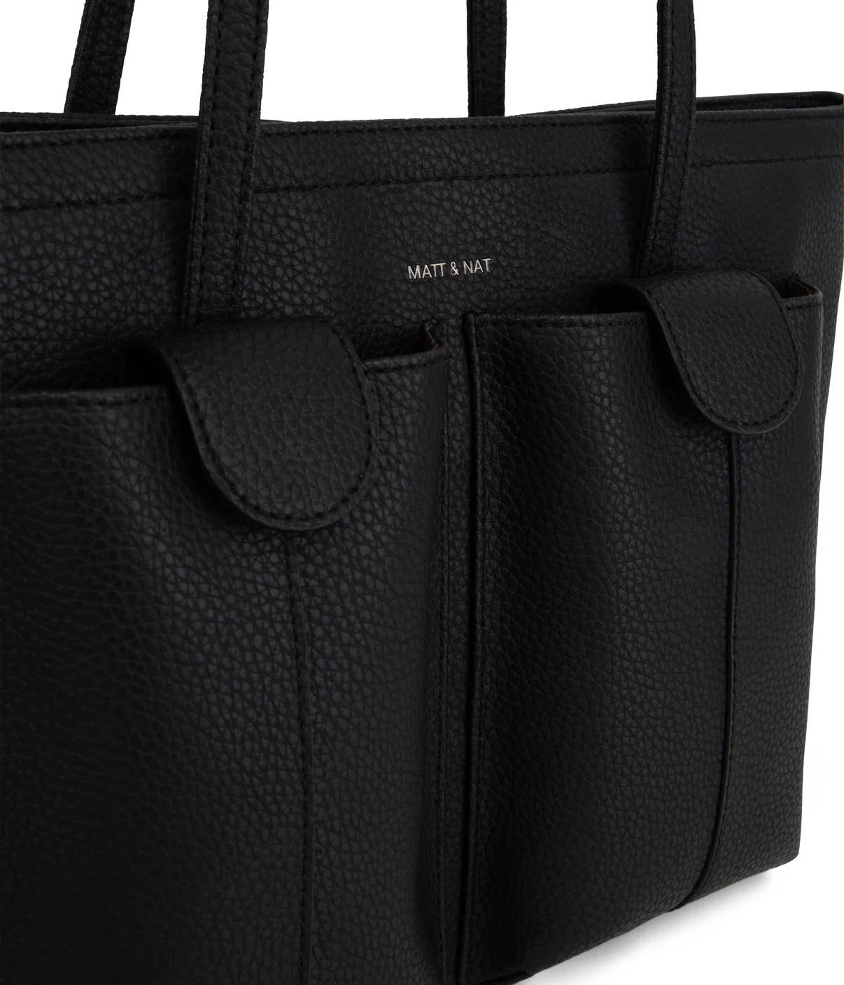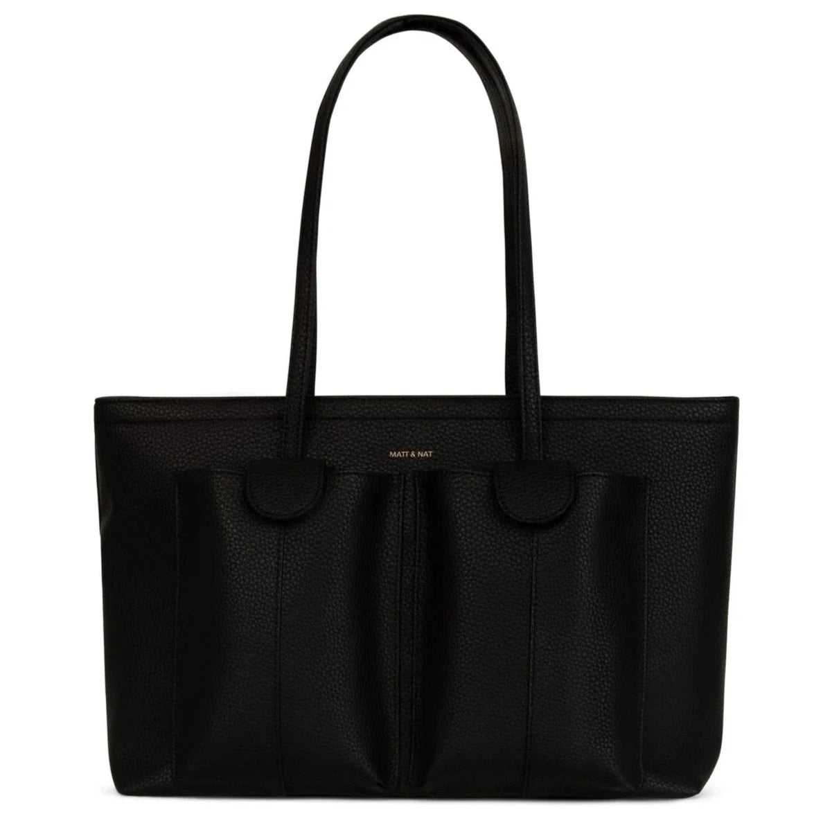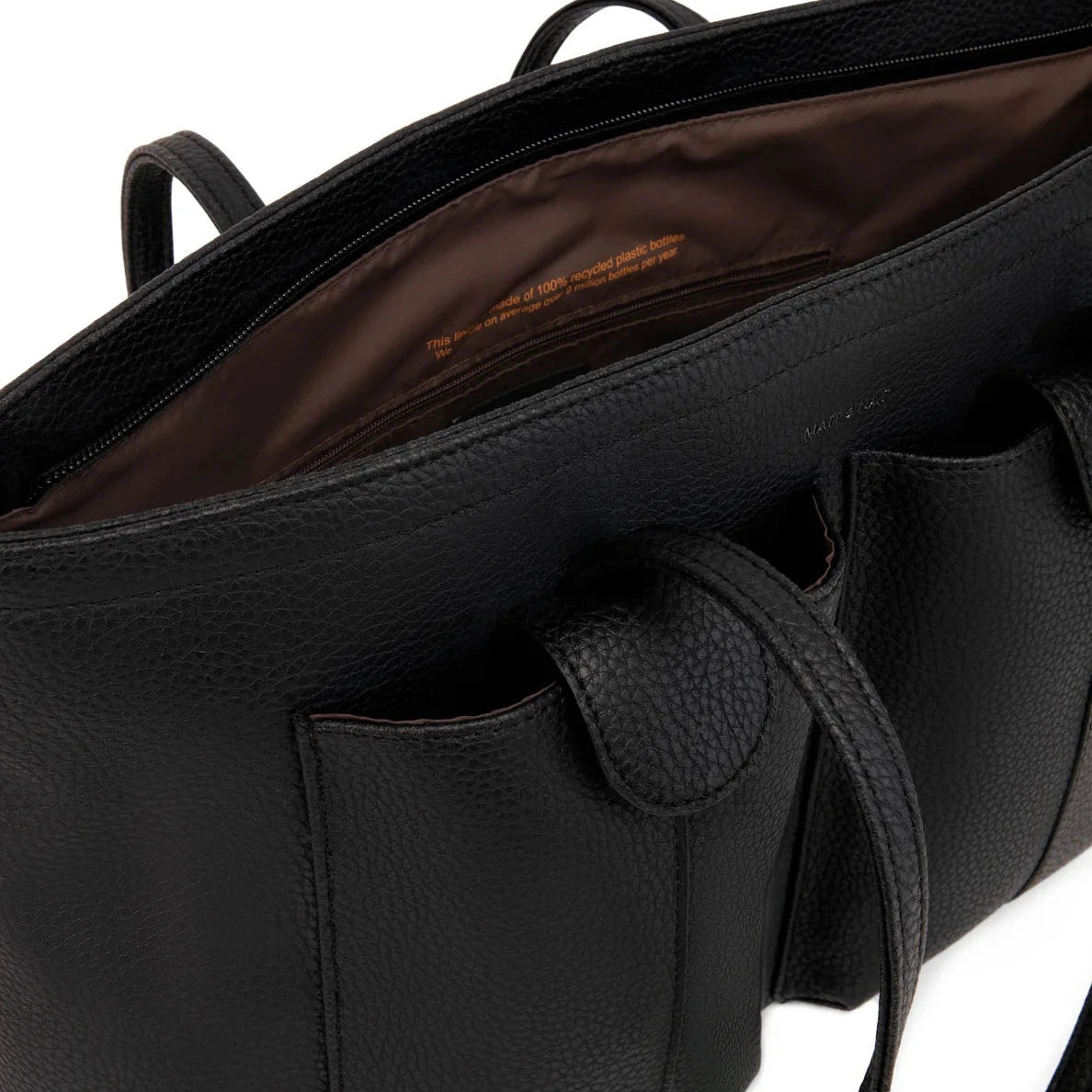Shopper tote with top metal zip closure and tab detail at the zipper end, produced by Matt & Nat.