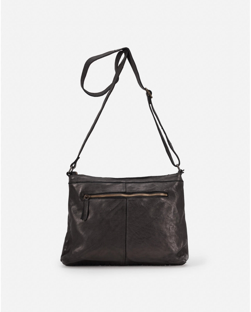 Washed, vegetable-tanned, and hand-braided cowhide leather cross bag. Zip closure, adjustable shoulder strap, internal and external pockets, and cotton lining.