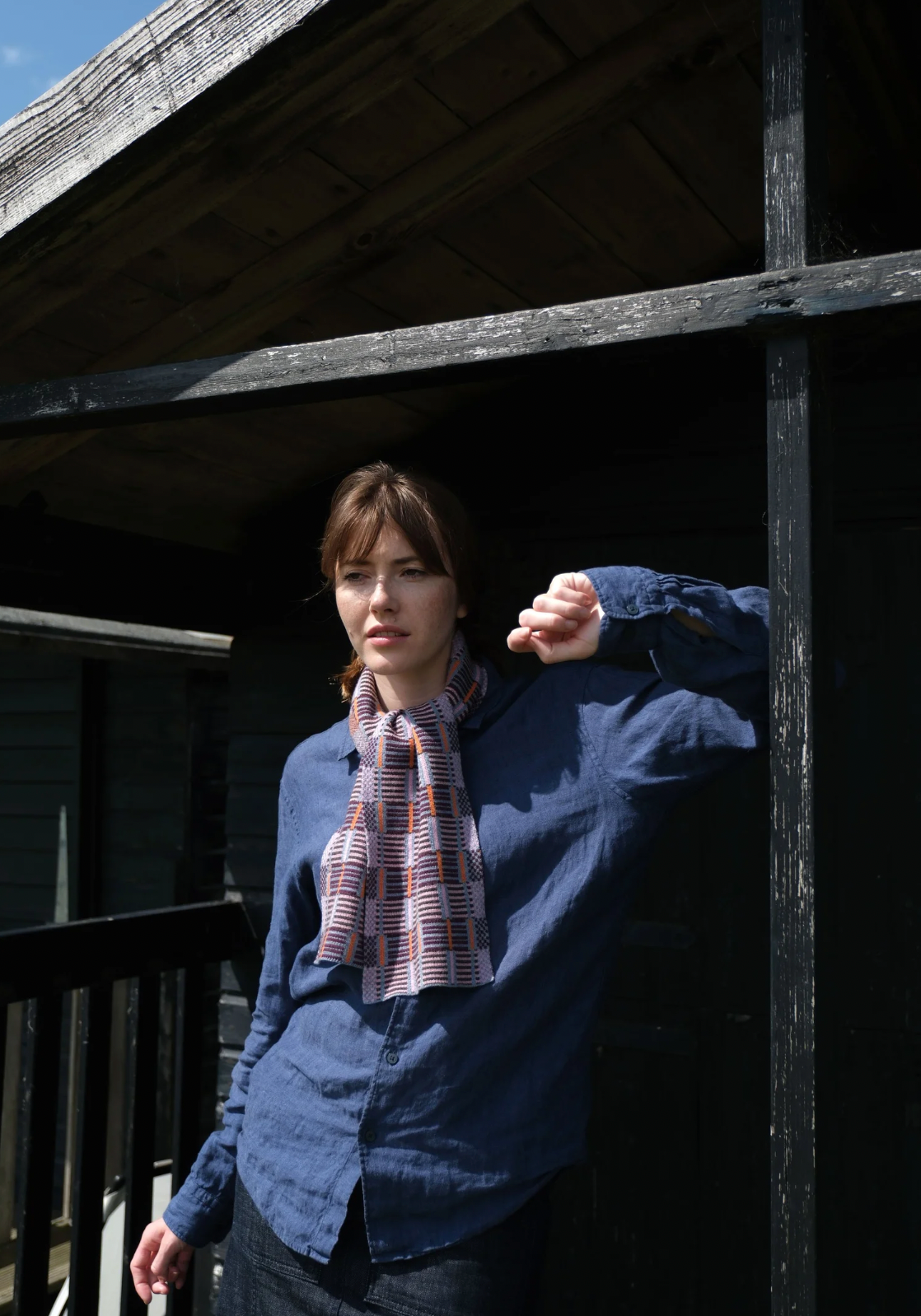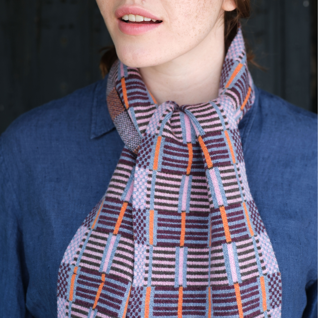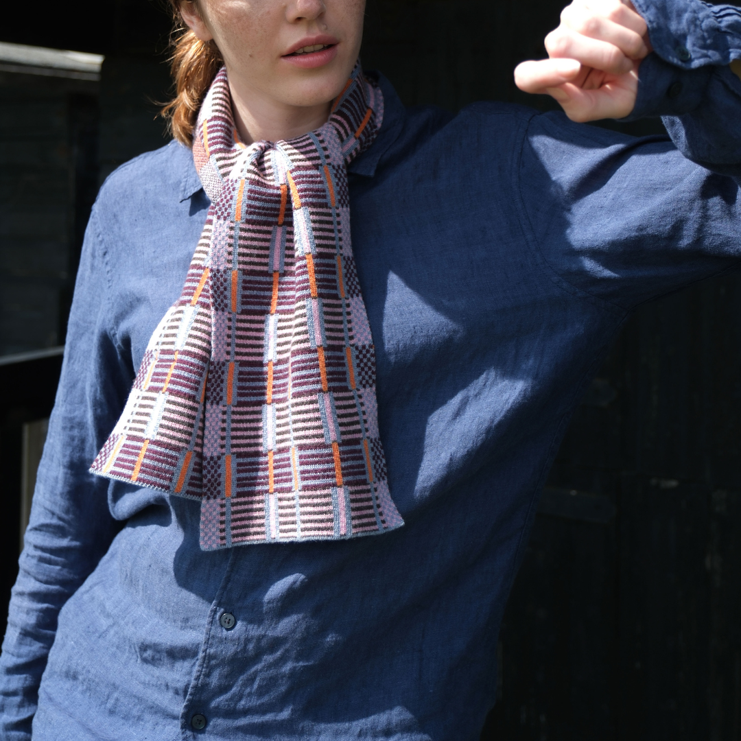 This new design scarf in merino wool has a graphic, geometric pattern and a smart, timeless feel. It is an easy piece to wear indoors when its chilly, as well as outdoors over a winter coat for a pop of colour.