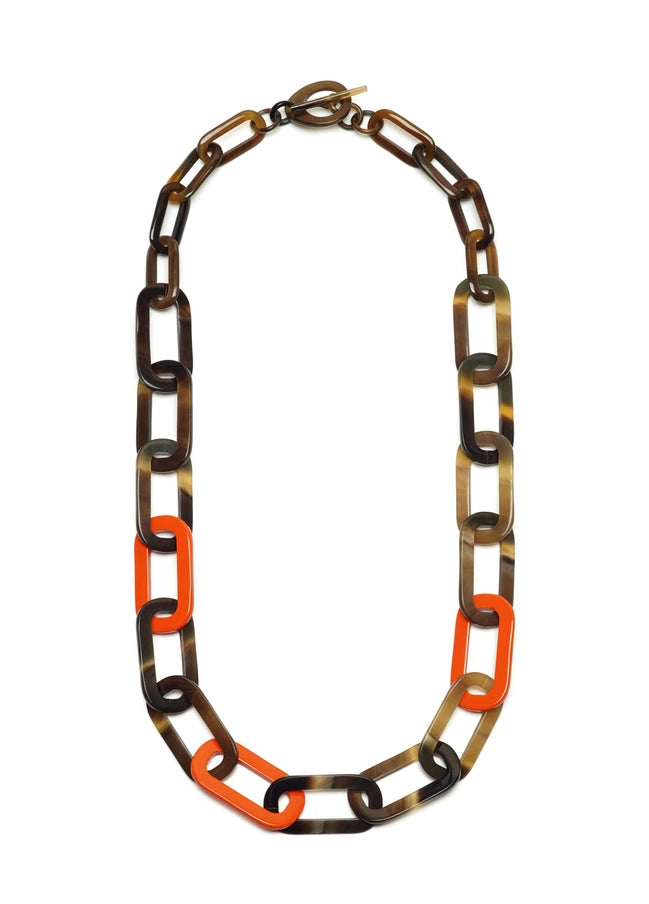 Long Link Horn Necklace - Orange & Brown