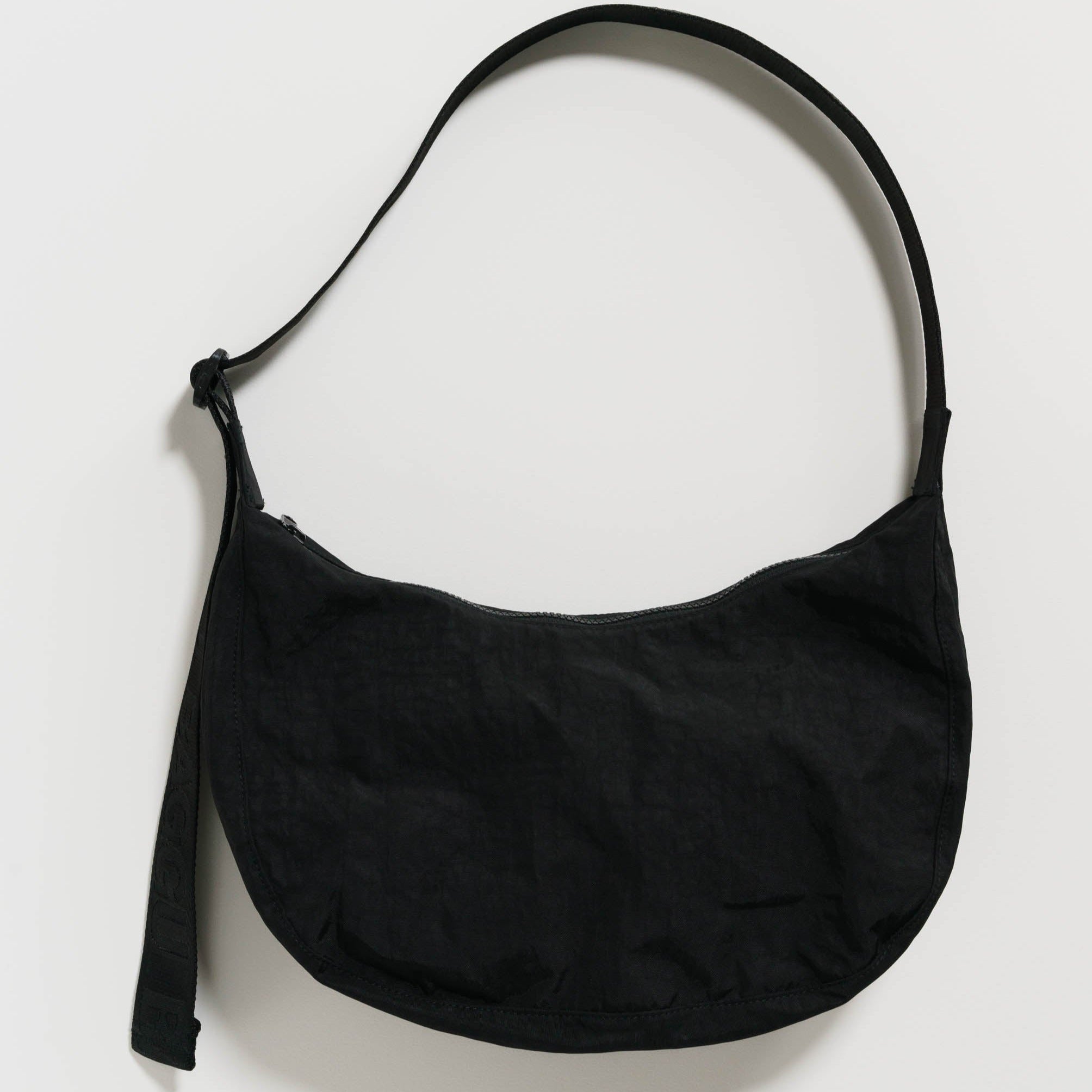 Practical doesn’t have to be boring. This Medium Nylon Crescent Bag is effortlessly casual and large enough to carry more than just the essentials. Wear it slung over your shoulder or crossbody for a hands-free experience. Complete with two interior pockets that make it easy to stay organized.