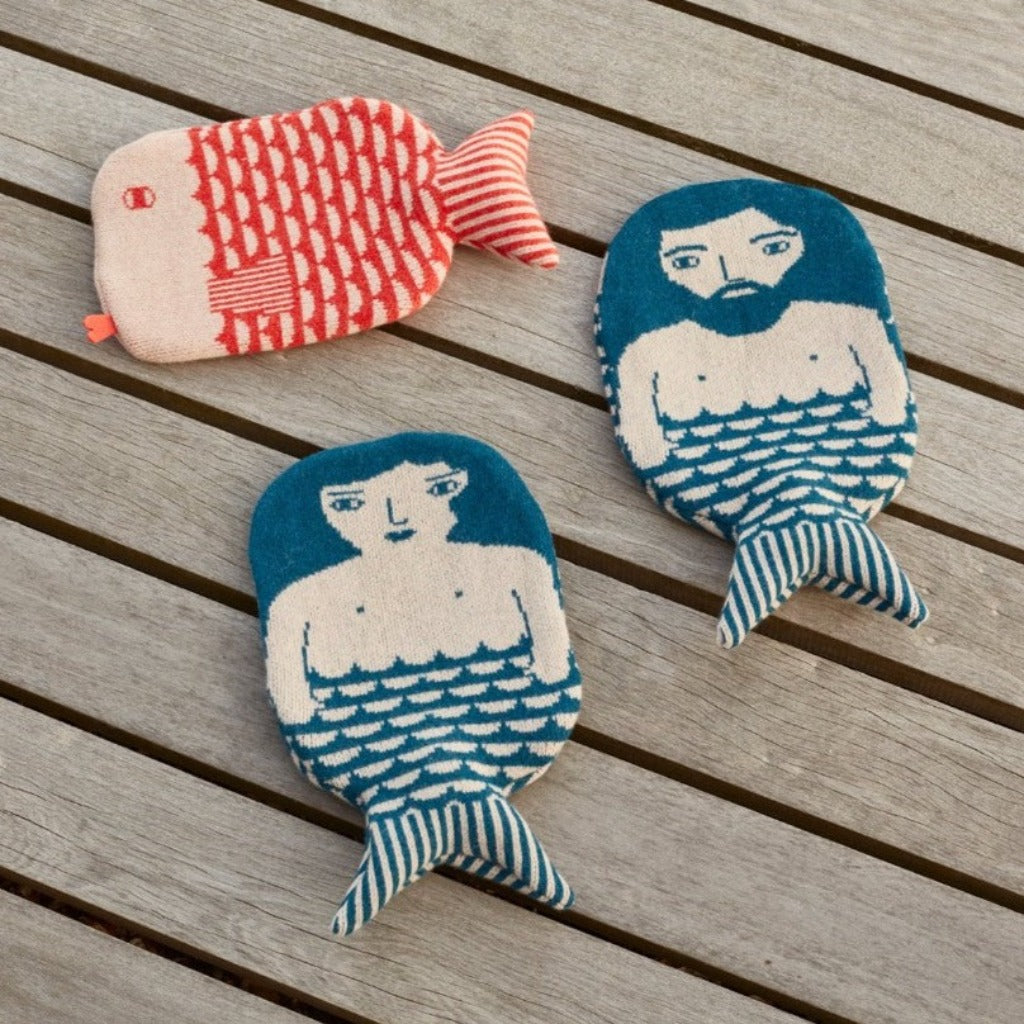 Cuddle up with your very own Merman Hot Water Bottle. Use this hot water bottle with a knitted cover to keep warm on a chilly evening or to soothe your aches and pains.