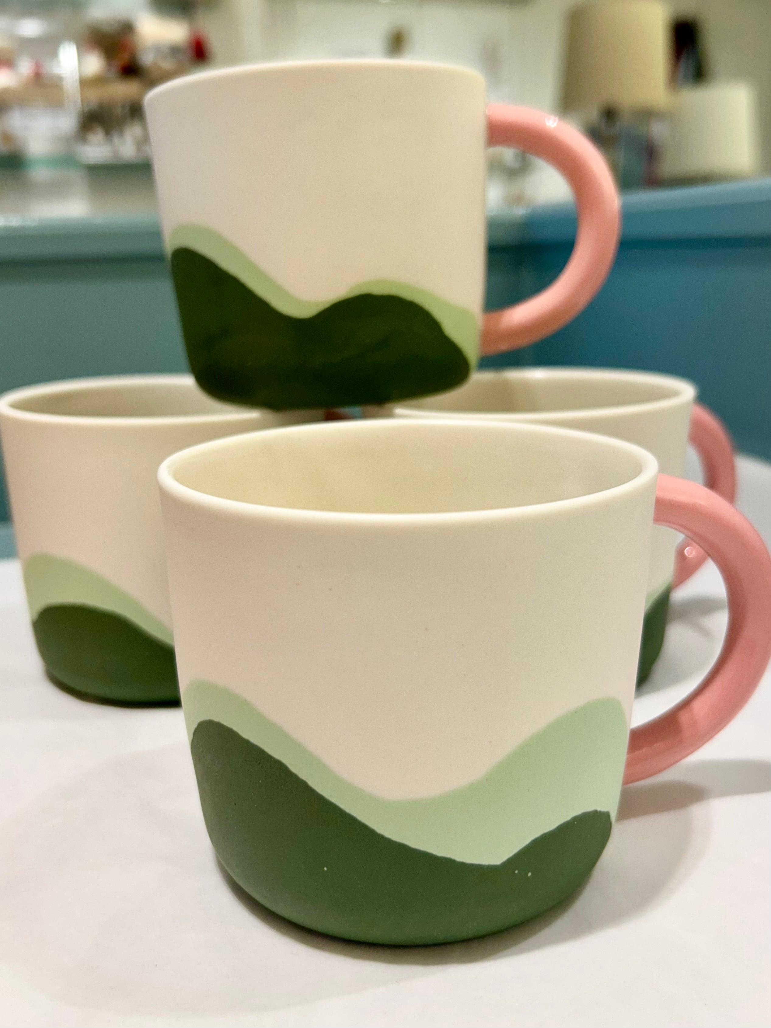 Each porcelain mug is made by Niamh in her studio in south London. She aims to create interesting colour combinations which look and feel great to use. The element of chance in her making process means each pattern is totally unique.