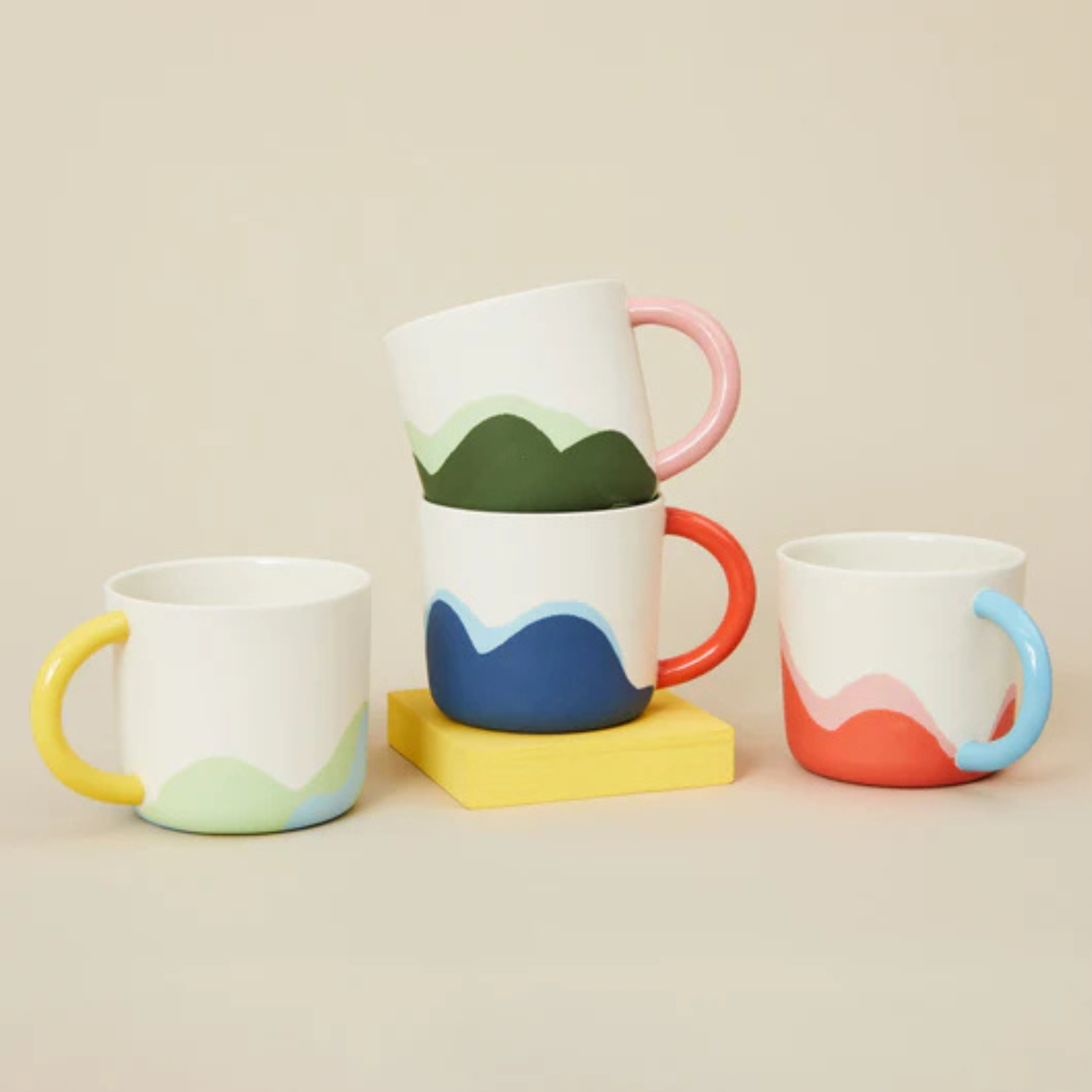 Each porcelain mug is made by Niamh in her studio in south London. She aims to create interesting colour combinations which look and feel great to use. The element of chance in her making process means each pattern is totally unique.
