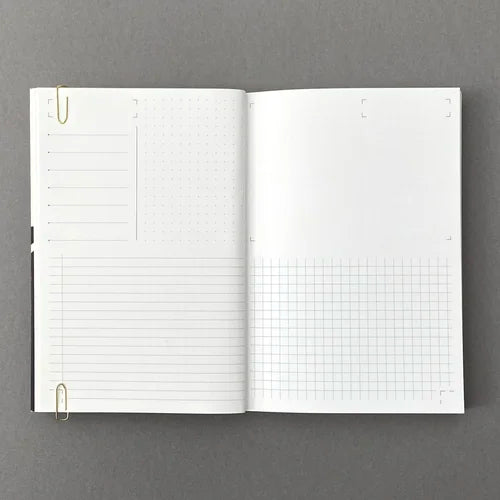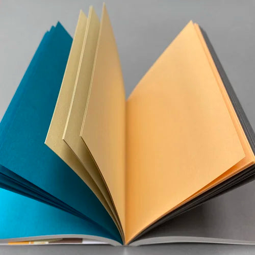 Part of the Affilate:107 range by Pavillion Print, this192 page notebook with double page design, featuring a combination of dots / grids / blank / lines, plus 64 colour ‘go-to’ pages, and an extended gate-fold cover design.