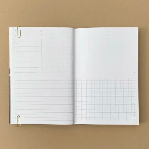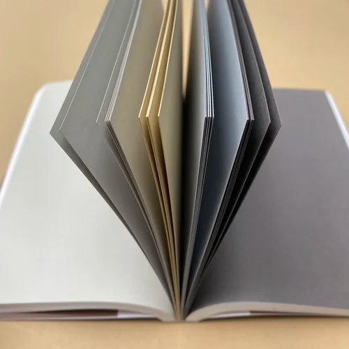 Part of the Affilate:107 range by Pavillion Print, this192 page notebook with double page design, featuring a combination of dots / grids / blank / lines, plus 64 colour ‘go-to’ pages, and an extended gate-fold cover design.