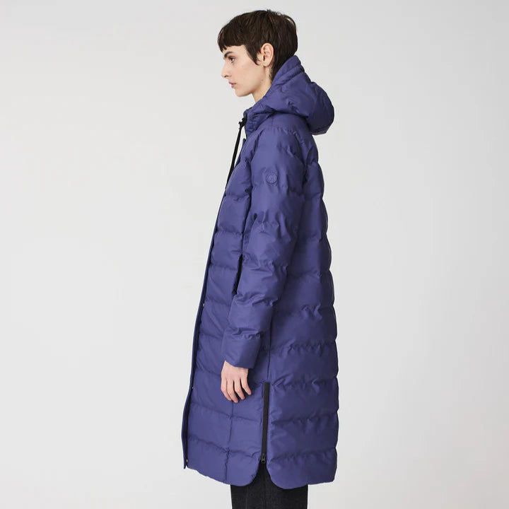 With all its taped seams and straight fit, the Puddle Women's Waterproof Padded Coat protects you from the elements in style from head to toe. Made from our iconic waterproof polyurethane fabric, this women's coat is padded with a layer of featherless insulation and designed with seamless chambers. Adapt this coat to your needs with the additional function of waterproof zippers on the sides for greater comfort.