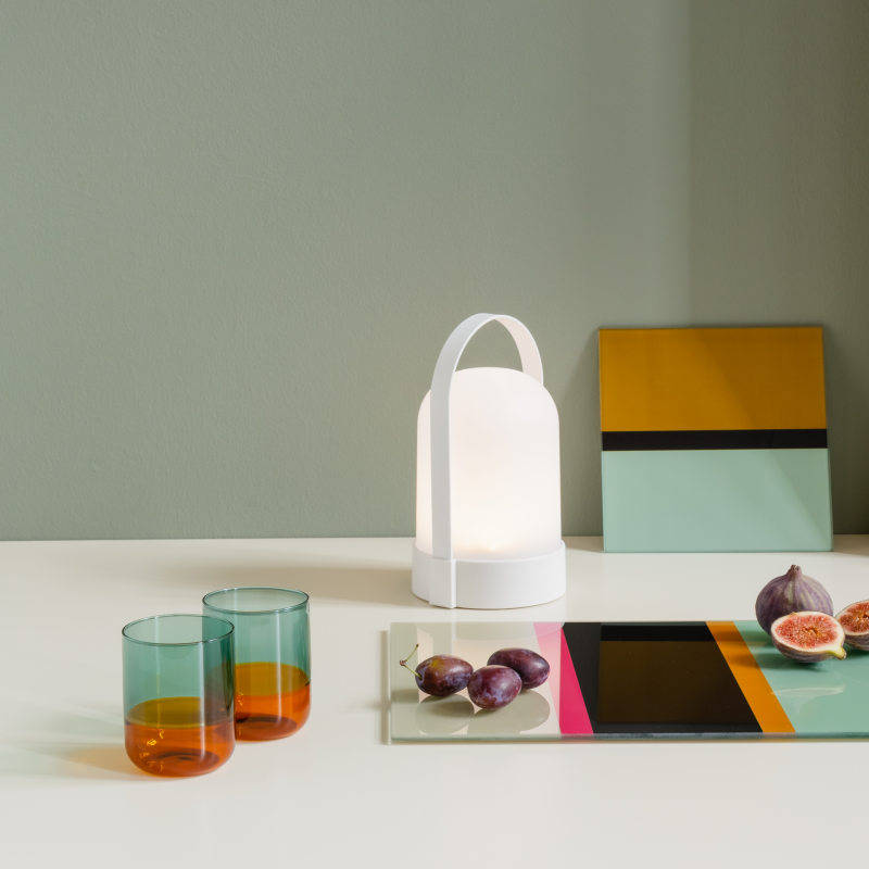 Light, delicate and with a special colour: these drinking glasses bring a touch of luxury to everyday life. When filled with water, they create an iridescent play of colours depending on the light. As the glasses are made of borosilicate glass, they are very robust and can easily withstand extremely cold or hot temperatures, so they can be filled with hot water or used in the oven.