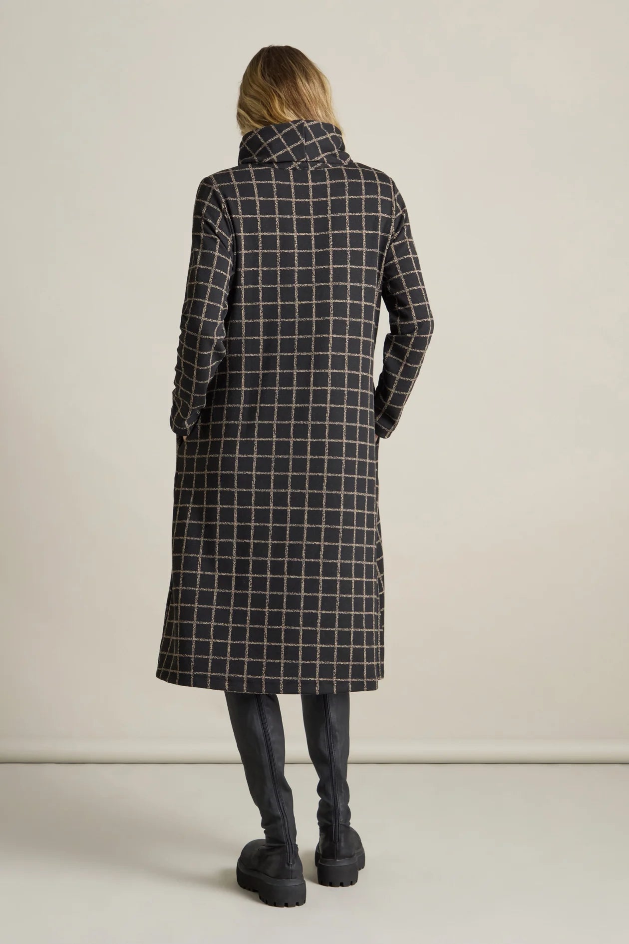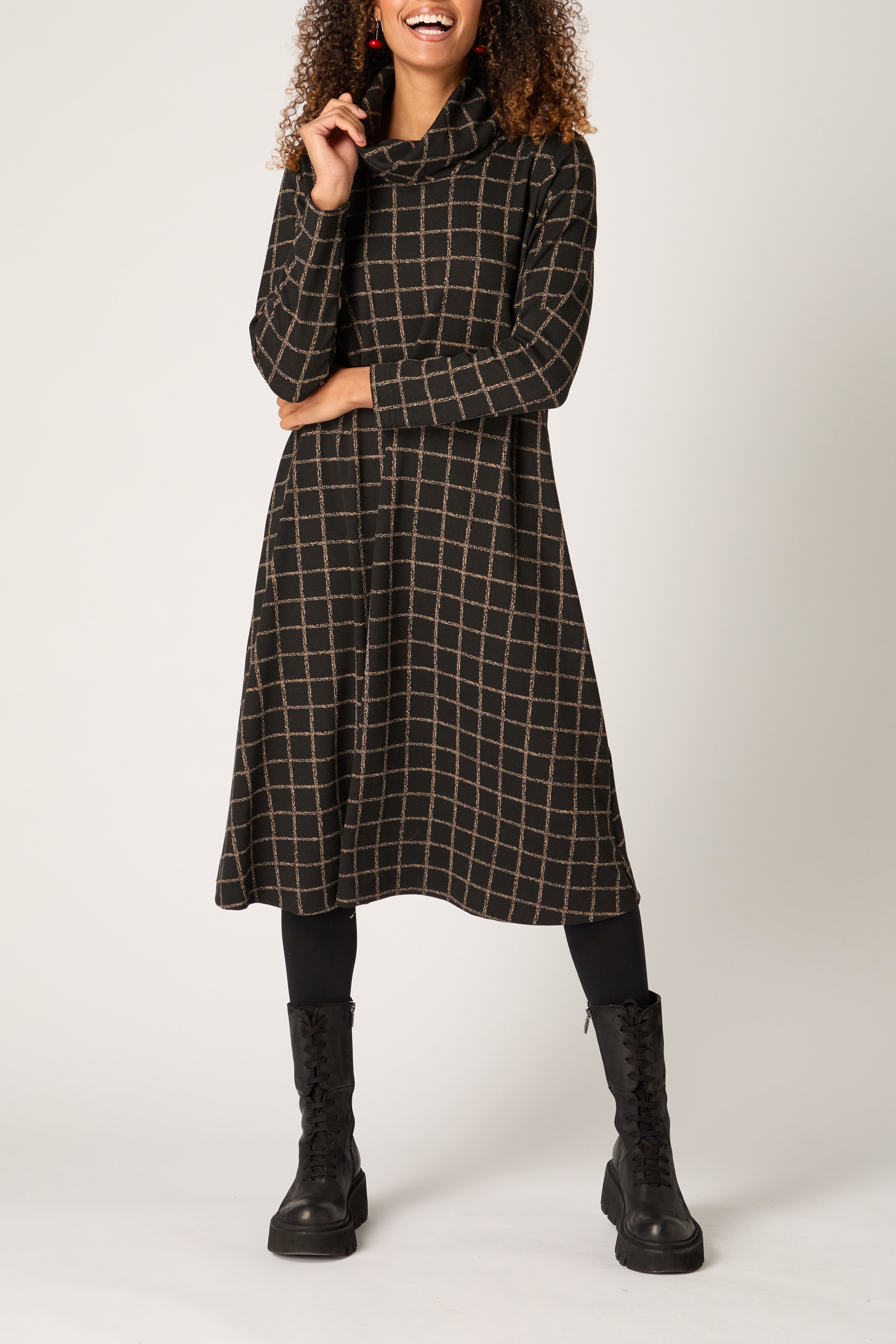 Small Broken Check Jersey Cowl Neck Dress - Black / Taupe