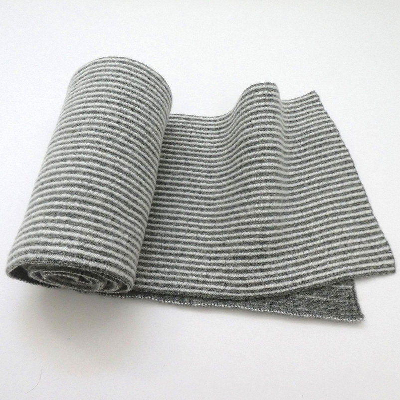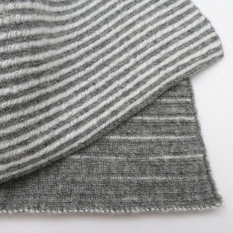 This textured vertical stripe scarf has been knitted with 100% luxury soft lambwool. Each item is hand produced on an industrial knitting machine and hand finished to create fine details and excellent quality.