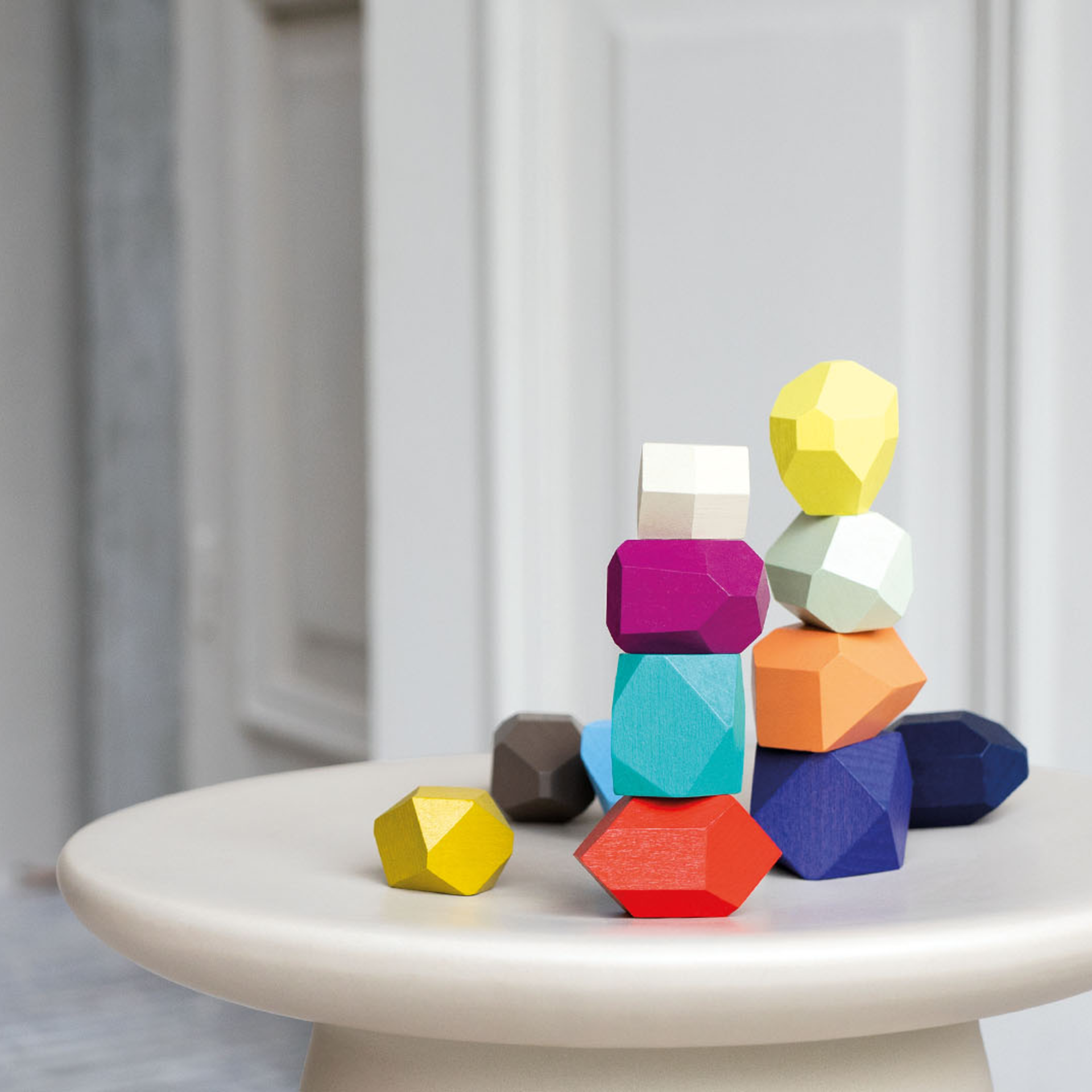 Who can stack as many bricks as possible on top of each other in a stable manner? With their different sized surfaces, the colourful components offer numerous opportunities to put the laws of statics to the test. Torrino is also fun as a beautiful decorative object.