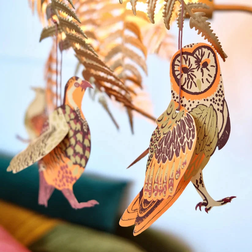 This set of four fold-out shapes boasts designs of the classic wintertime robin, partridge, dove and owl.