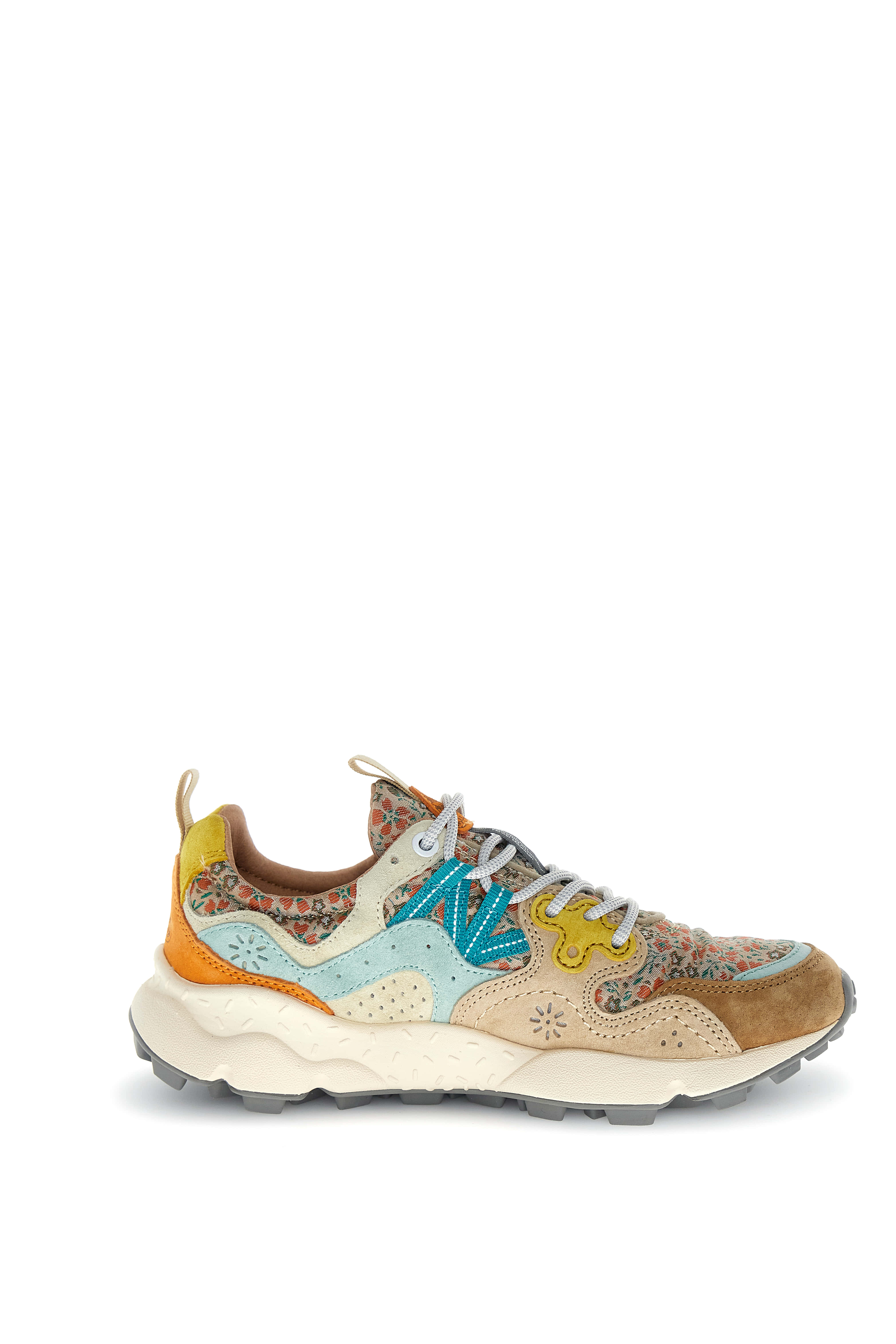 The YAMANO 3 collection has been designed to convey the uniqueness of Flower Mountain, its love for nature, and its commitment to high-quality craftsmanship. The brand's outdoor spirit is captured through details inspired by the shapes and cycles of nature: layered design elements, dotted lines tracing gentle curves, hiking laces, and iconic leather eyelets. The result is an iconic sneaker that embraces the foot, while the lines, embroidery, and hand-stitched upper showcase a dedication to high-quality craftsmanship and Japanese inspiration.